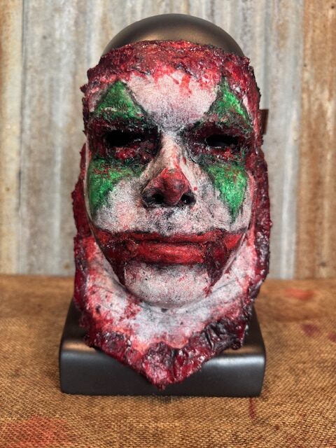 Our New Giggle Grinz Shamrock mask features a gritty, unrefined, and naturally raw look—designed to feel brutal, worn, and disturbingly real. Part of our new Skin Mask series, it is sculpted from high-grade platinum silicone with internal mesh reinforcement throughout, delivering durability while remaining lightweight, flexible, and extremely comfortable to wear. Heavy layered paint, distressed textures, and blood FX detailing give Shamrock its harsh, broken character presence under both low lighting and full camera exposure.