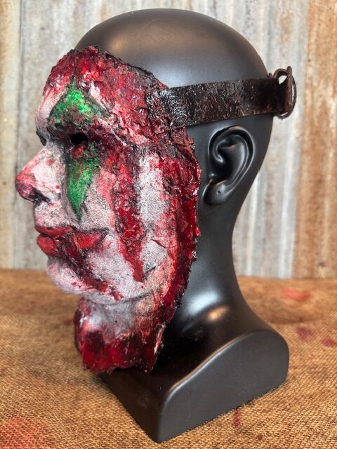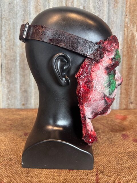Finished with authentic distressed leather strapping and metal buckles, this mask fits securely for extended use in haunted attractions, film, and immersive environments. Very affordable without sacrificing realism, Shamrock pairs seamlessly with full costumes or stands alone as a savage centerpiece.
