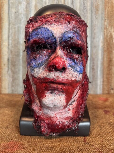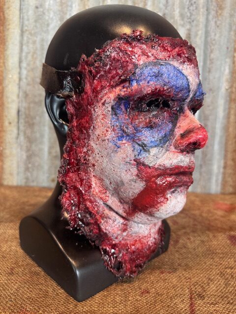 Our New Giggle Grinz Glory mask features a gritty, unrefined, and naturally raw look—designed to feel brutal, worn, and disturbingly real. Part of our new Skin Mask series, it is sculpted from high-grade platinum silicone with internal mesh reinforcement throughout, delivering durability while remaining lightweight, flexible, and extremely comfortable to wear. Heavy layered paint, distressed textures, and blood FX detailing give Glory its harsh, broken character presence under both low lighting and full camera exposure.