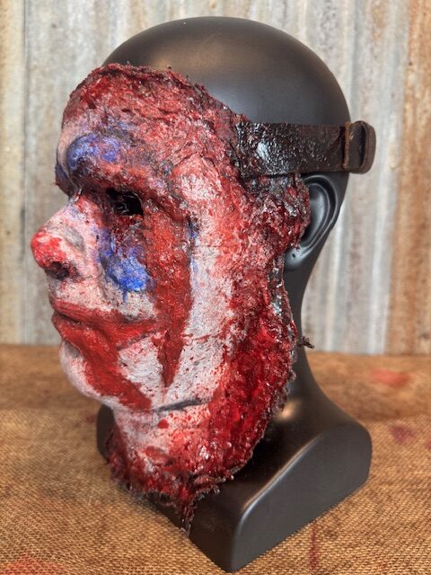 Finished with authentic distressed leather strapping and metal buckles, this mask fits securely for extended use in haunted attractions, film, and immersive environments. Very affordable without sacrificing realism, Glory pairs seamlessly with full costumes or stands alone as a savage centerpiece.